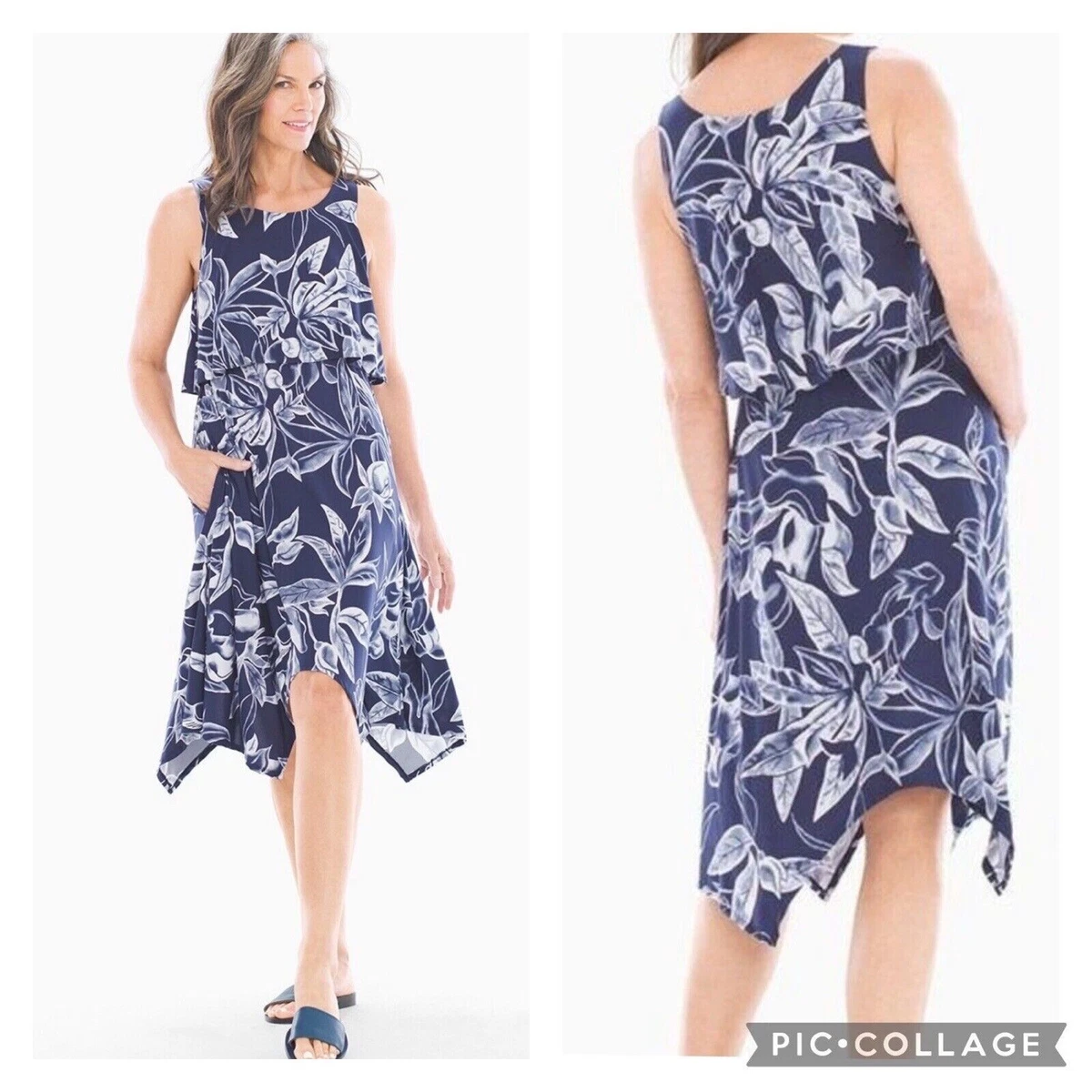 Soma Laguna Sleeveless Navy Blue White Layered Asymmetrical Hem Dress Xl Ebay